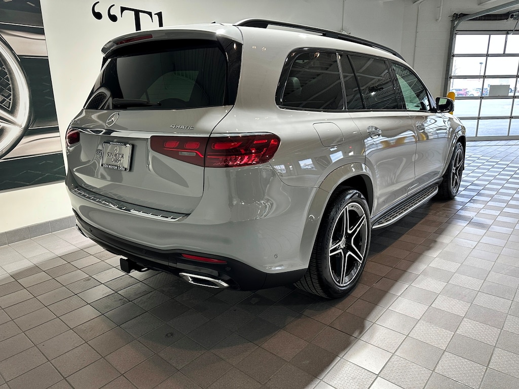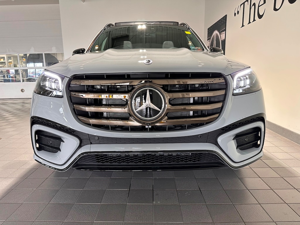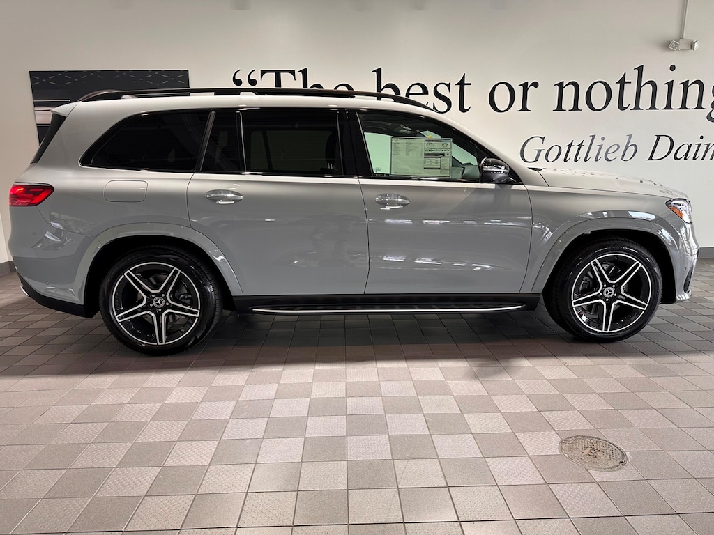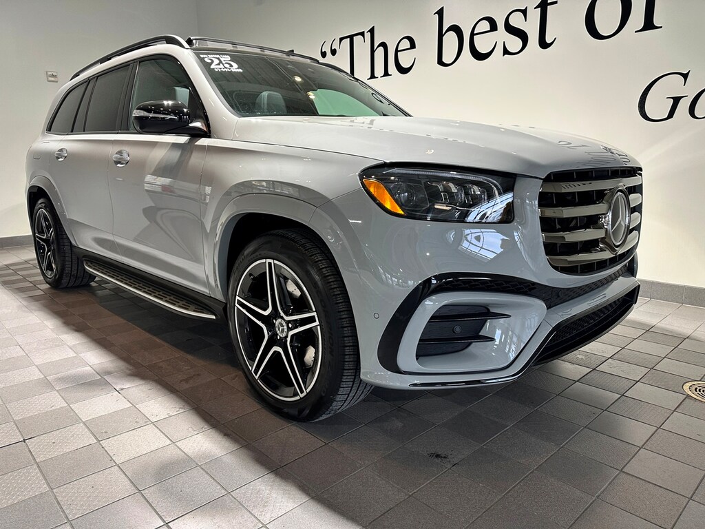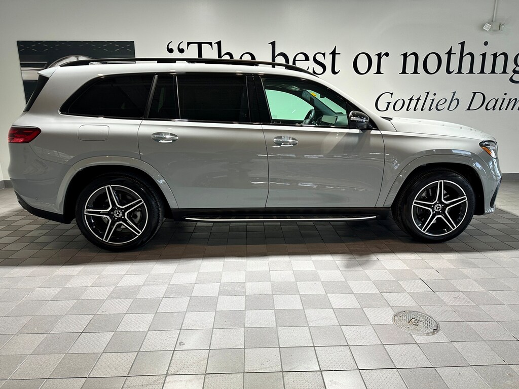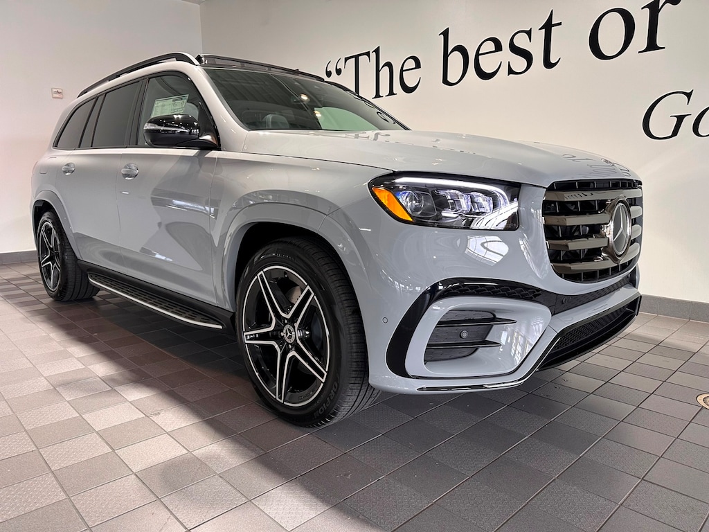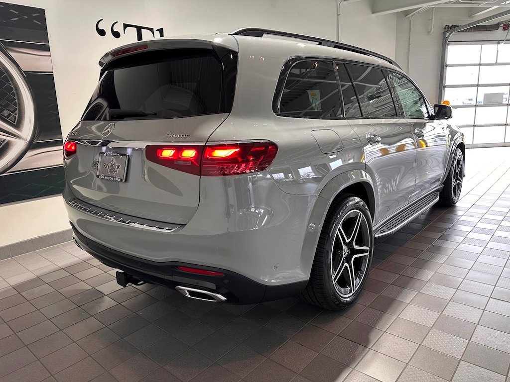 Sun Motor Cars Loaner Special. Includes Night Package, AMG Line, Captain Chairs (6 Seater), Power Rear Side Window Sunshades, Heated Steering Wheel, Black Fabric Headliner, Trailer Hitch, Illuminated Running Boards, Soft Close Doors, Natural Grain Grey Oak Wood Trim, 21 Inch AMG Twin 5 Spoke Wheels with Black Accents, MB Tex Upper Dash and Door Trim, Load Sill Protector, and All Season Black Rubber Floormats.